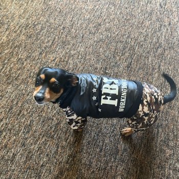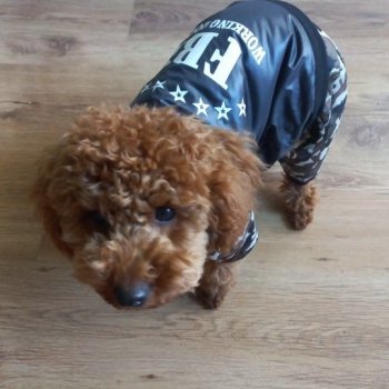 It is as shown in the photos of the publication, I loved it, it was very good for my little dog girl, the little suit already on looks beautiful. I am very satisfied with my purchase. Is of excellent quality. Sizes are exact